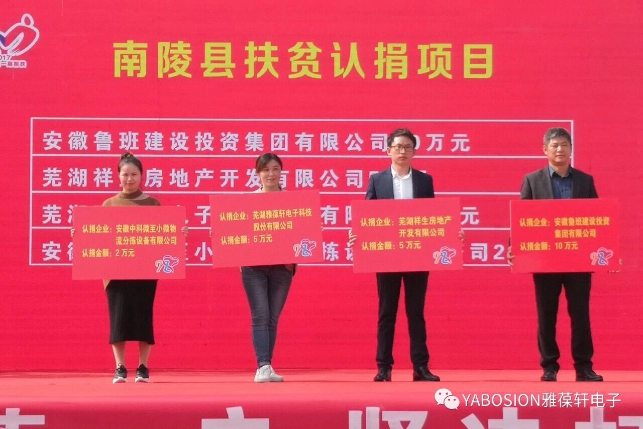 上午我公司代表参加了县政府组织的以“10•17崇德向善 共享美好生活”为主题的精准扶贫文化进村活动。扶贫济困、乐善好施,是中华民族的传统美德。雅葆轩不忘初心,积极响应县委县政府号召,主动参与扶贫济困,现场认捐人民币5万元,用实际行动彰显了企业感恩回馈社会的美好一面。