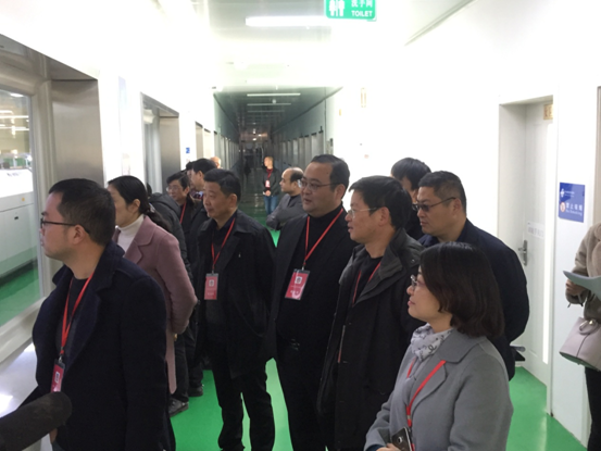 市人大代表们在董事长的陪同下,调研公司生产经营以及万级洁净车间及新设备运行、新产品研发和生产工艺改进等方面情况的介绍。