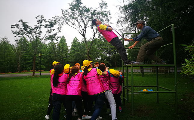 在教练的指引下,集结大家的智慧,全员共分为8个队,选队长、起队名、写队训、唱队歌、展风采之后各队有序进行拓展项目的开展,项目拓展过程中,每一个行之有效的方法、每一个善意的提醒、每一句温暖的鼓励、每一个肯定的眼神都被及时的传达下去、直到任务的完成。